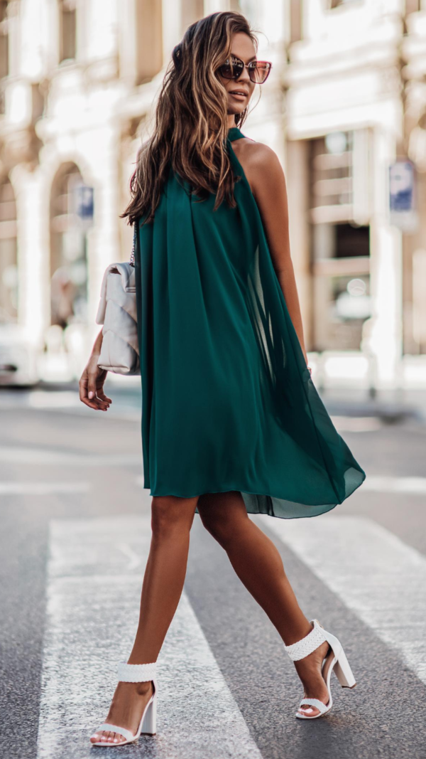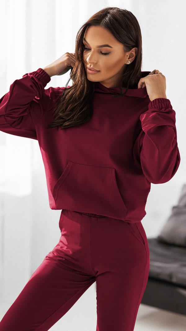 W komplecie krótkie, lekko rozkloszowane spodenki z ozdobnym gumowaniem w talii oraz kieszeniami. Idealny krój wydłuża optycznie sylwetkę.