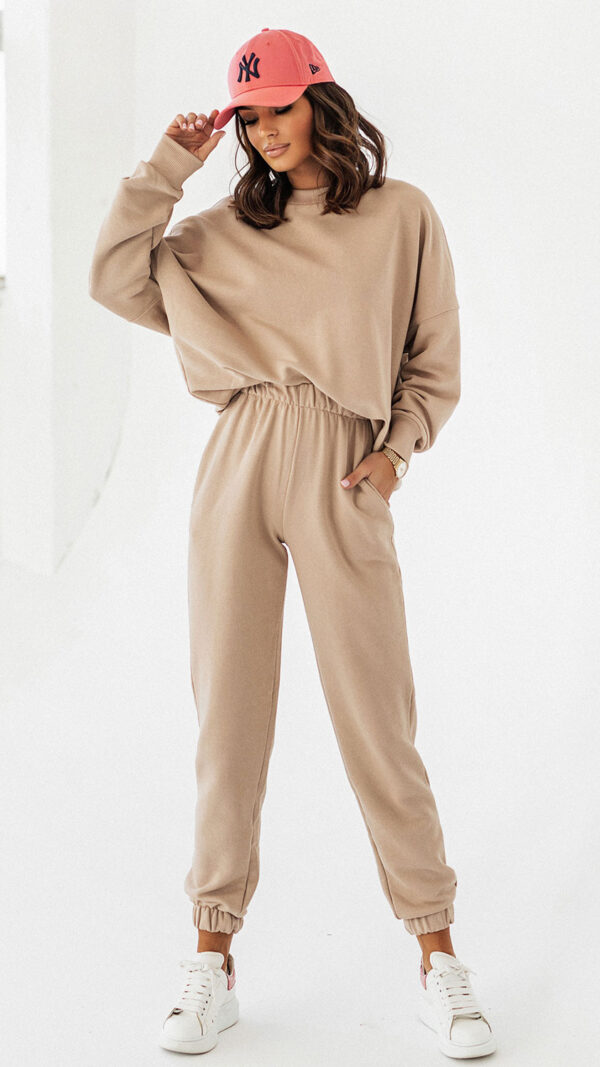 Beżowe spodnie dresowe z przeszyciami Lamia